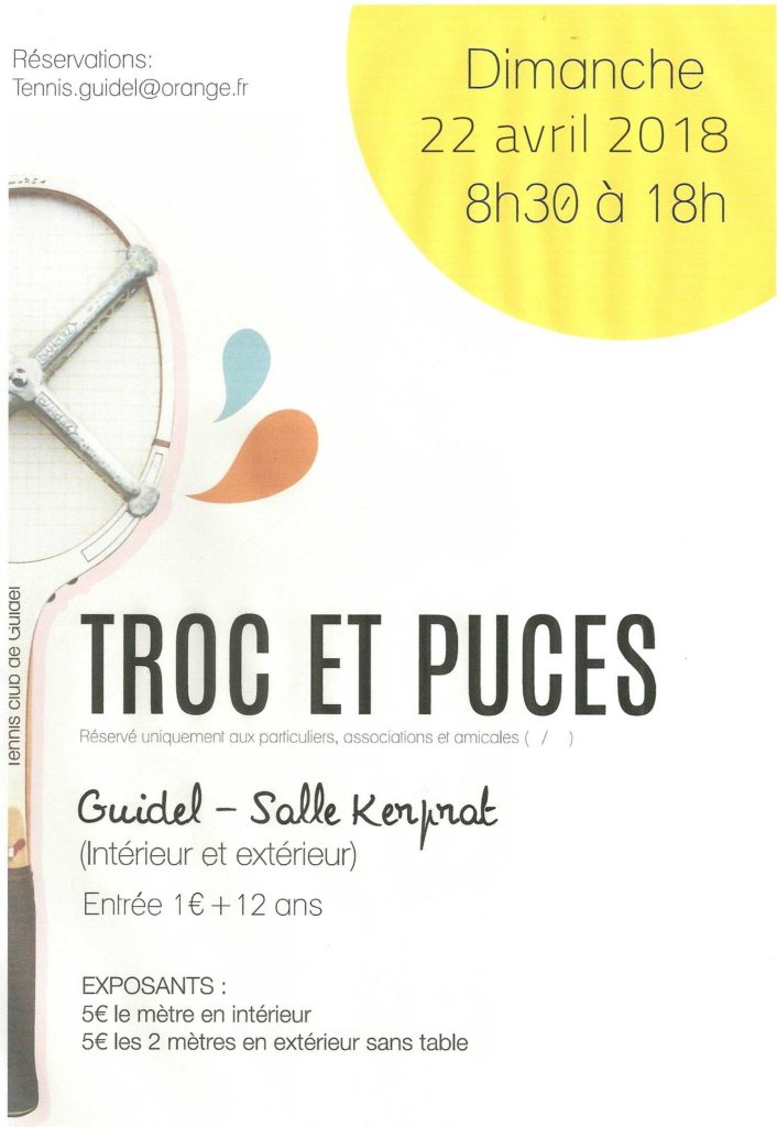 Dimanche 22 avril de 8:30 à 18:00, le Tennis Club de Guidel organise son Troc et Puces de…